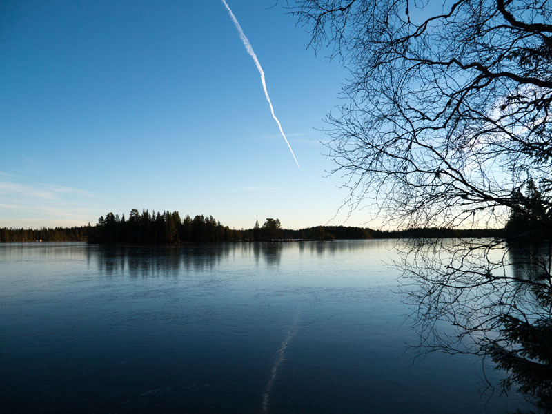 1. Oppdatering: Isen ligger fortsatt etter noe vind i natt – i hvert fall så langt mitt øye rekker 🙂 Og vi kan gå på isen inne ved land, men drømmer ikke om å forsøke lengre enn ca 78 cm ut fra land uten å borre litt først for å sjekke tykkelsen (-: