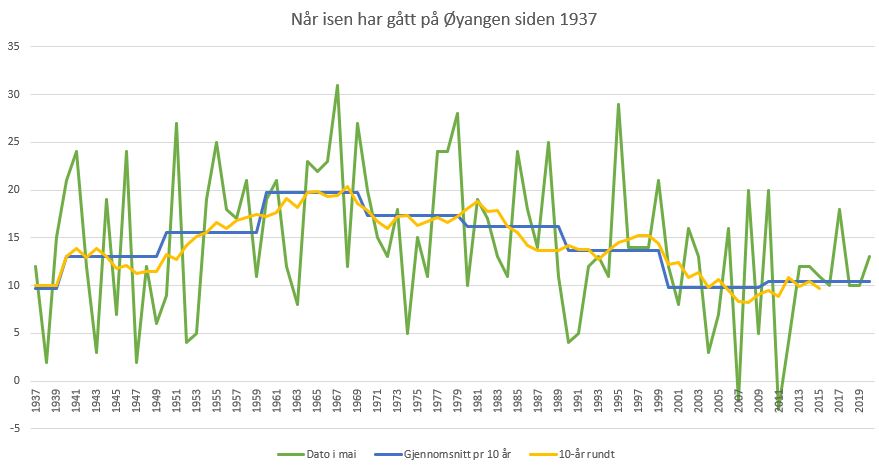 I følge informerte kilder, Sjeriffen, gikk isen på Øyangen 13. mai 2020.