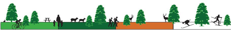 Alternativ 1 tar utgangspunkt i dagens bruk og kvaliteter på Ringkollen. En plan med utgangspunkt i dette alternativet vil jobbe med å sikre eksisterende kvaliteter, skape en bedre forutsigbarhet for eksisterende aktører innenfor området og løse utfordringer og konflikter knyttet til dagens bruk.
